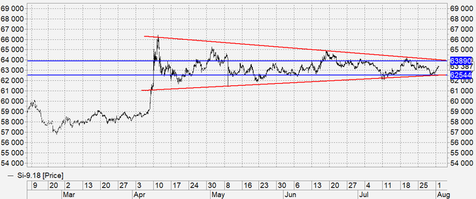 Покупка: нет. Кто в позиции, перенесите стоп на 62600. Цель: 69000.