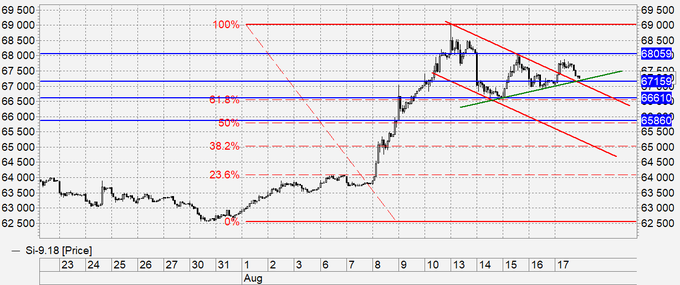 Продажа: возможна. Стоп: 67.73. Цель: 65.10. Кто в позиции, перенесите стоп на 67.73. Цель: 65.10.
