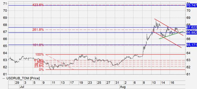Рубль: пока возможность продолжения коррекции мы рассматриваем как базовый сценарий. Ход к 65.00 (64.00) обозначит нам отсутствие панических настроений. Даже если далее ослабление рубля продолжится в будущем, оно не будет восприниматься как катастрофа. Улыбка госпожи Меркель уж одного рубля точно стоит.
