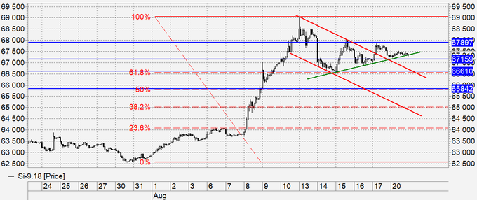 Продажа: возможна. Стоп: 67.42. Цель: 65.10. Кто в позиции, пока держите стоп на 67.73. Цель: 65.10.