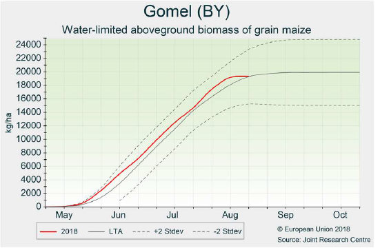 Рисунок 11. Надземная биомасса зерновой кукурузы в Гомеле (Беларусь).