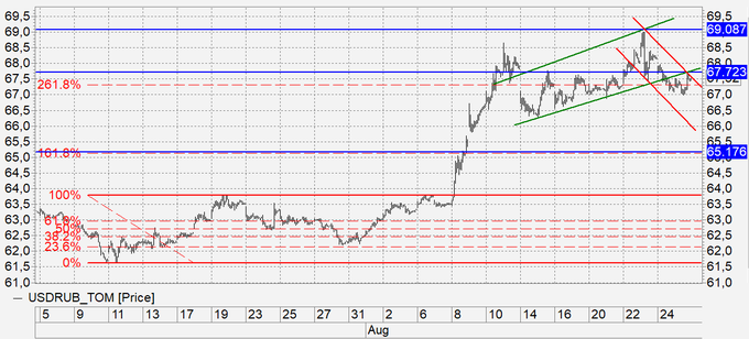 Продажа: сейчас. Стоп: 67.82. Цель: 65.10. Кто в позиции, перенесите стоп на 67.82. Цель: 65.10.