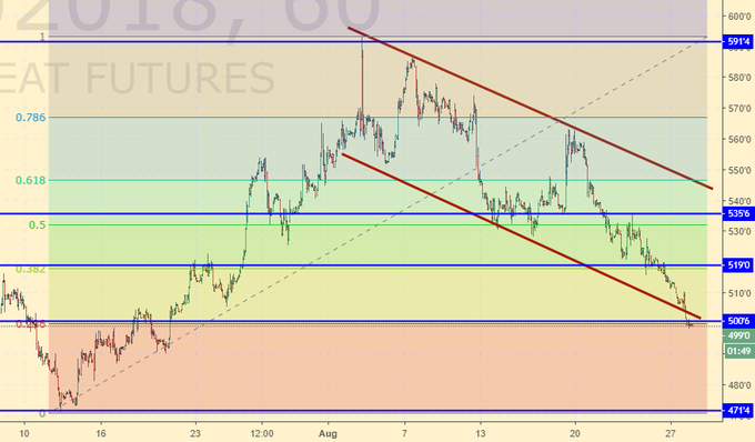 Пшеница: падающий доллар может помочь сегодня быкам отбиться на уровне 500.0. Рынок уже чуть ниже сегодня утром, но возврат возможен. Здесь надо бороться, покупать и надеяться на отскок. В любом случае, глобальной ошибки тут нет, вы не будете покупать по максимальным ценам года. Вот чего точно делать не нужно.