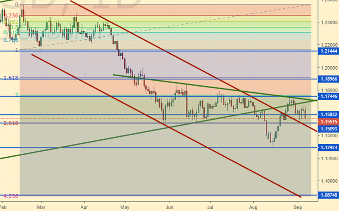 Сценарий роста: 13 сентября будет заседание ЕЦБ. Вряд ли кто-то будет раскачивать лодку до появления комментария банкиров, так как есть опасения, что могут быть обозначены более ранние сроки сворачивания программы количественного смягчения. А это может означать продолжение роста стоимости евро, так как с американцами все более или менее ясно. Сверхагрессивного повышения ставок при Трампе ждать не приходится.
