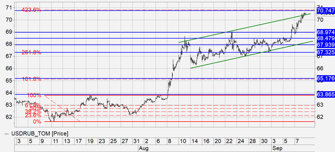 Продажа: возможна при касании 70.70. Стоп: 70.90. Цель: 69.00 (68.00).