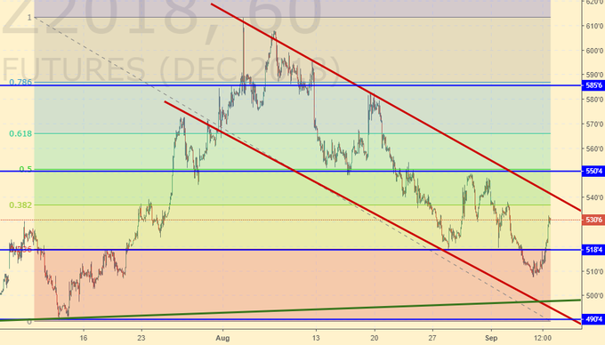 Пшеница: мы выросли выше 520.0. На данный возврат намекало поведение кукурузы, которая никуда падать и не собиралась. Вчера, все кто следит за рынком должны были купить после роста выше 520.0. К сожалению, на рынке нет цен, по которым можно всегда покупать, и нет цен, по которым можно всегда продавать. Прямо противоположное пишут брокеры в своих книжках, но сие есть ложь, дабы заставить трейдера совершать сделки постоянно, ошибаться и не получать прибыль, а медленно барахтаться и «помирать». Сегодня тот день, когда можно купить.
