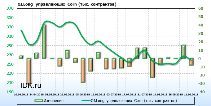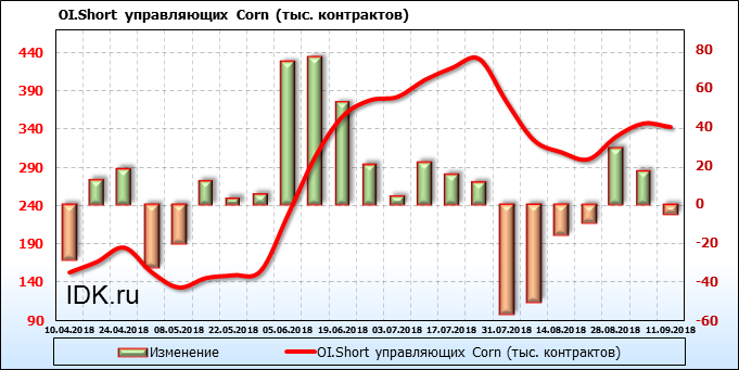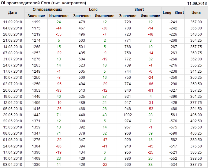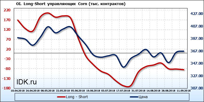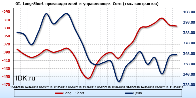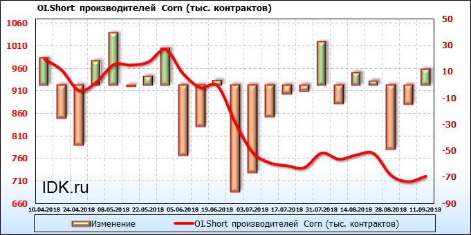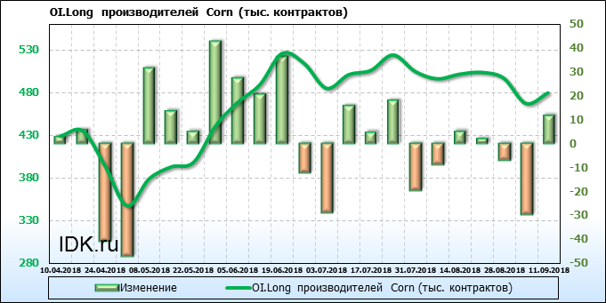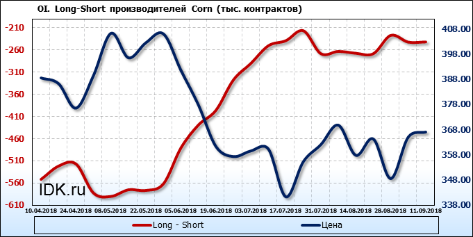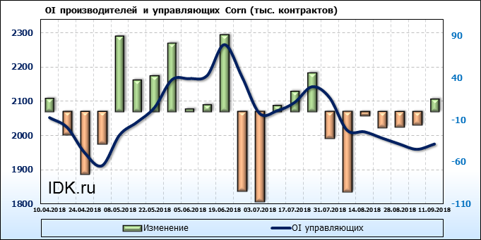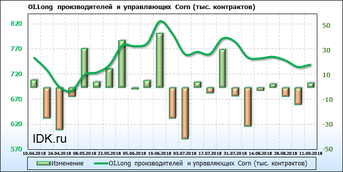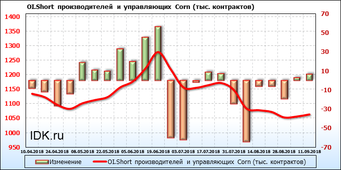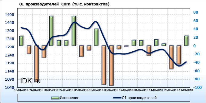 За прошлую неделю, 03.09.18 — 07.09.18, разница между длинными и короткими позициями производителей выросла на 0 тыс. контрактов. В тоже время, цена выросла на 2 цента. Производители не торопятся наращивать продажи, предполагая, что возможен рост цены в ближайшее время.