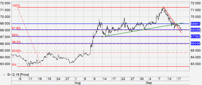 Продажа: нет. Кто в позиции, перенесите стоп на 67.53. Цель: 65.20. Не исключен возврат к 68.00, поэтому резко поджимаем стоп.