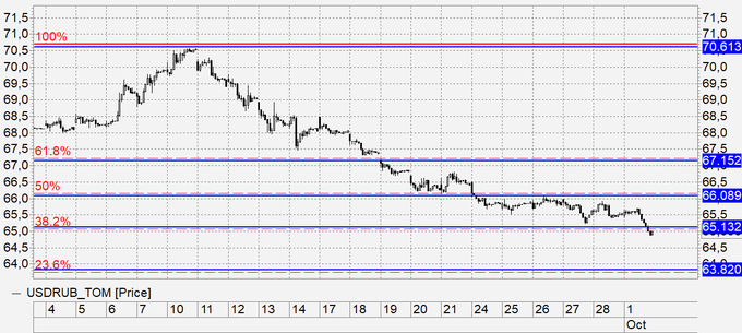Рубль: на фоне обезумевшей нефти имеем обезумевший рубль. Вчера вечером прошли ниже 65.00. Если сегодня на открытии торгов не будет гэпа вверх, то рубль продолжит укрепляться к 63.90. А ниже данного уровня ничего нет. Там, где-то в глубине останется только 60.00. Картинка для «стабильной» валюты уже немного диковата. Посмотрим, что будет нарисовано дальше. Сигналов разворота вверх пока нет. Не покупаем. Жаль стоп на 64.86.