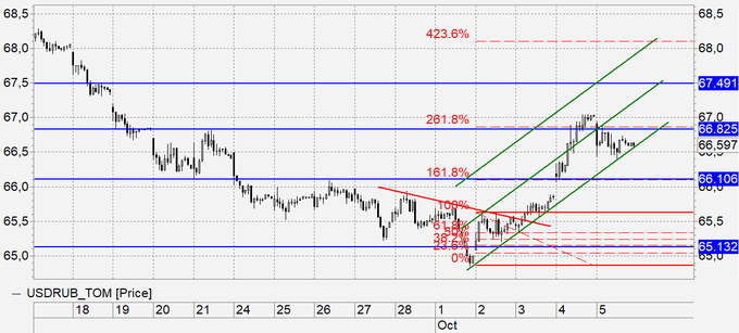 Рубль: сегодня возможно укрепление до 66.10, более агрессивная распродажа долларов не исключена, то есть к 65.60 мы можем сходить. Более глубокое движение вниз, проход ниже 65.60 будет означать слом бычьих устремлений. Пока наиболее вероятным вариантом видим, что рубль не сможет укрепиться ниже 65.60 до тех пор, пока не станет ясна суть американских санкций.