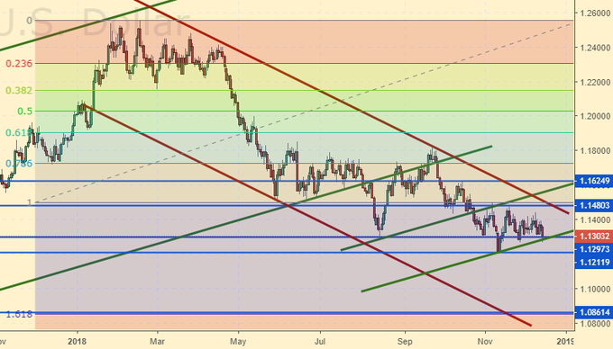 Сценарий падения: две недели без каких-либо сильных движений после встречи G20 в Аргентине. Понятно, что все ждут развязки между США и Китаем. Но даже если, торговая война не угаснет, мы вряд ли падем ниже 350.0.