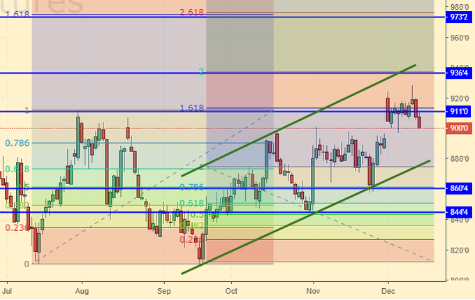 Сценарий роста: рассматриваем сентябрьский фьючерс, дата экспирации 14 декабря. Похоже, народ собрался закрыть гэп под 900.0, нельзя сказать, что это очень неприятно, но лучше бы мы этого не делали сейчас. В целом ничего страшного. Быки продолжают сохранять контроль над ситуацией. Держим покупки.