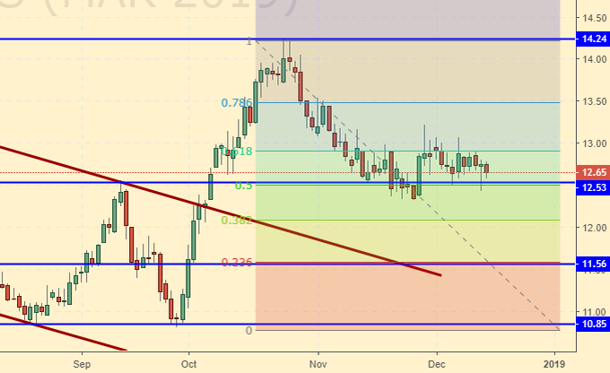Есть небольшой перевес на стороне быков, что и подтверждается поведением цен. Обращает на себя внимание, что спекулянты не торопятся подключаться к фазе роста. Если ФРС США не повысит ставку 19-го декабря, а этого мало кто ждет, на самом деле, то тогда рынок товаров интенсивно пойдет в рост, пшеница в том числе.