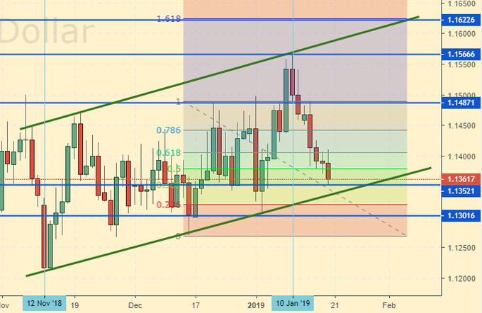 Сценарий роста: кто ж виноват, что Германия выросла за год всего на 1.5%, а все разумные люди ждали 2.2%. Все из-за немцев. Мы пока остаемся в растущем канале, но он настолько вял и непрезентабелен, что если мы из него не вывалимся вниз это будет просто чудом. У нас стоит стоп на 1.1330. Но за него страшно. Тем не менее, стоим, ничего не меняем.