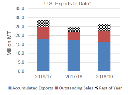 Необходим сильный конец сезона, чтобы достичь прогноза по экспорту из США