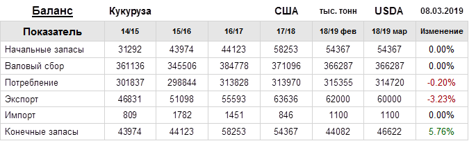 Смотрите также баланс по кукурузе на 12.03.2019 по России