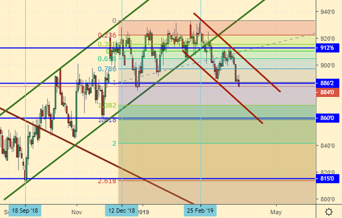 Сценарий роста: рассматриваем майский фьючерс, дата экспирации 14 мая. Теперь мало сомнений в том, что мы достигнем 860.0. Это произойдет на следующей неделе. От данного уровня можно купить.