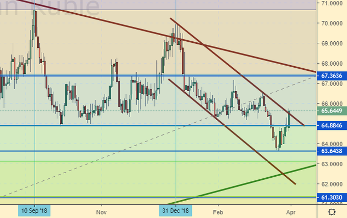 С завершением налогового периода рубль утратил поддержку экспортеров. Но это детали по сравнению с ожидающимися санкциями со стороны США по делу Скрипалей. Пока есть слух, но нет подтверждения, что могут быть введены ограничительные меры для российских банков. Весьма вероятно, что прежде чем Трамп позвонит по поводу Венесуэлы в Москву для звонка будет подготовлена соответствующая почва. На следующей неделе со стороны Белого дома может прилететь неприятный сюрприз, который может оказаться жестче мер, которые были реализованы Вашингтоном ранее. Нет никаких сомнений в том, что администрация президента США находится в бешенстве после прибытия в Венесуэлу российских военных. Единогласное мнение государств Северной Америки и Южной Америки о том, что российские военные должны покинуть Венесуэлу развязывает Вашингтону руки.