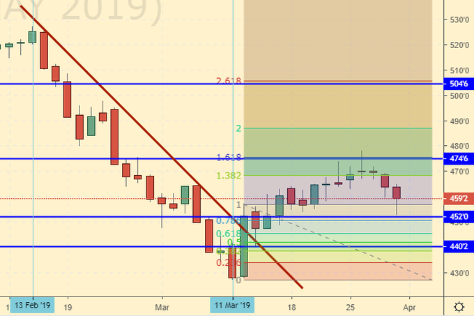 Сценарий роста: рассматриваем майский фьючерс, дата экспирации 14 мая. Здесь все просто. Надо войти в покупку, желательно по 454.0. Поставить стоп на 451.0 и посмотреть чем дело кончится.