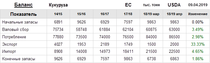 Смотрите также баланс по кукурузе на 11.04.2019 по России