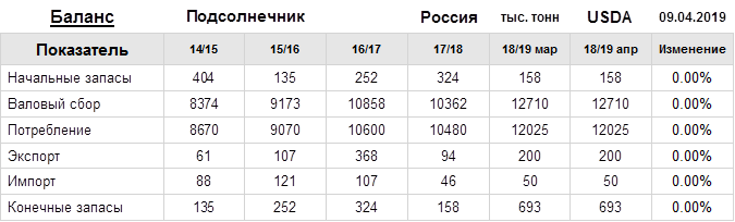 Смотрите также баланс по подсолнечнику на 11.04.2019 по Украине