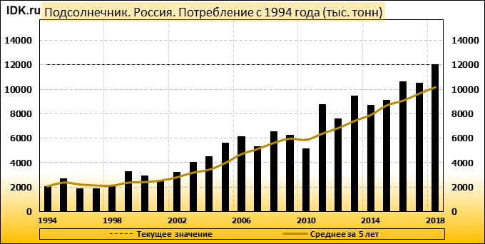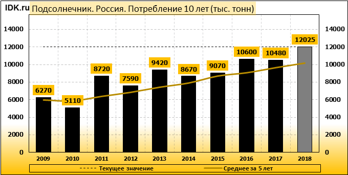 Потребление: показатель не изменился и составляет 12025 тысяч тонн.