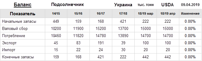 Смотрите также баланс по подсолнечнику на 11.04.2019 по ЕС