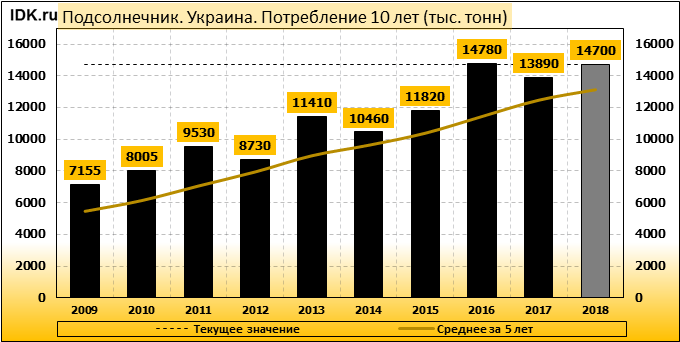 Потребление: показатель не изменился и составляет 14700 тысяч тонн.