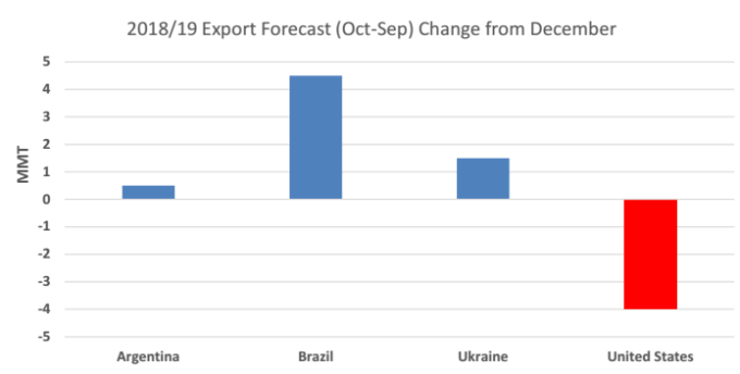 Рисунок 1. Изменения экспортного прогноза на 2018/19 год (октябрь-сентябрь) с декабря