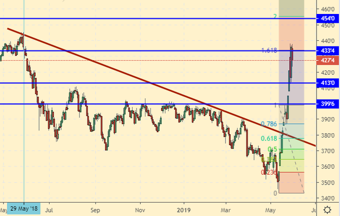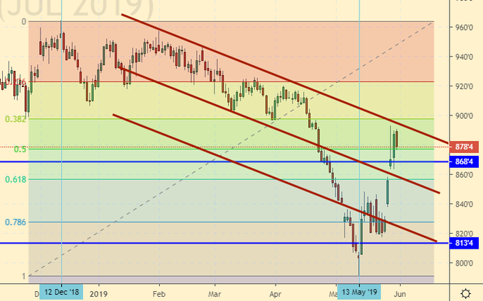 А на фоне постоянно растущей угрозы нового кризиса текущий рост выглядит неким авансом. Быкам стоит надеяться на то, что спустя два-три месяца погодные условия будут признаны плохими (например, в Европе разразиться сильнейшая засуха), в противном случае весь текущий рост окажется блефом и зерновые пойдут искать новые минимумы уже в августе, на фоне начала уборки пшеницы.