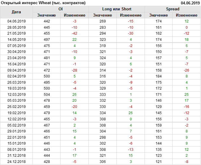 Отчет по открытому интересу. Кукуруза, CME Group на 08.06.2019