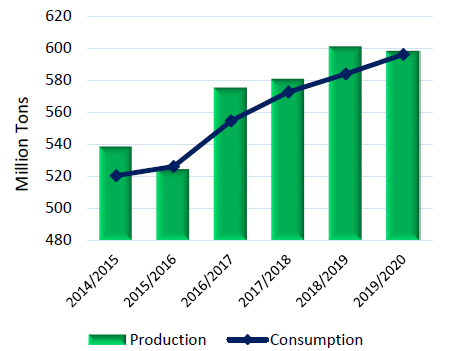 Рисунок 1. Мировое производство и потребление масличных культур