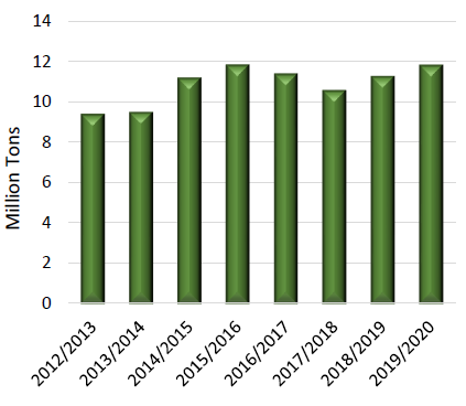 Прогнозируется, что мировое производство подсолнечника в 2019/20 году составит 51 млн. тонн, что на полмиллиона тонн меньше рекордного показателя текущего года. Сокращение производства в России и Украине в связи с уменьшением уборочных площадей и падение производства в Турции при снижении урожайности являются основными факторами. Конечные остатки, согласно прогнозу, снизятся, так как прогнозируется рост торговли и переработки, несмотря на менее крупный урожай.