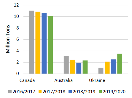 Рисунок 16. Падение канадской торговли рапсом и рост в Австралии и Украине.