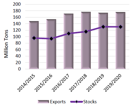 Несмотря на снижение мирового производства, общее предложение сои в мире, согласно прогнозу, вырастет на 1,5 процента при увеличении переходящих остатков с 2018/19 года, главным образом в Соединенных Штатах. Продолжающийся рост мирового спроса, вероятно, уравновесит рост предложения в этом году, оставив глобальные конечные остатки почти без изменений с 2018/19 г. Соотношение мировых остатков к потреблению немного снизится, но останется на высоком уровне.