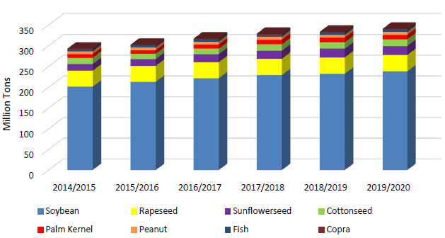 Прогнозируется, что мировое потребление масличных вырастет, поскольку растущий спрос на протеиновые корма продолжает стимулировать рынок. Африканская чума свиней в Китае и Вьетнаме продолжает замедлять прежде сильный рост спроса на этих рынках. Однако низкие цены на масличные и ожидаемый высокий мировой спрос на мясо и рыбу повсеместно стимулируют потребление. Потребление сои, на которое приходится 60 процентов сектора масличных культур, будет и впредь оставаться движущим фактором роста общего объема.