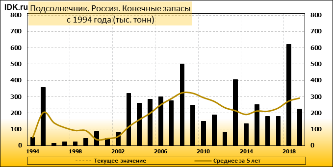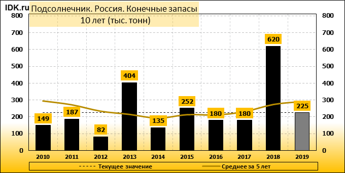 Конечные запасы: составят 225 тысяч тонн. Оценка с последнего отчета не изменилась.