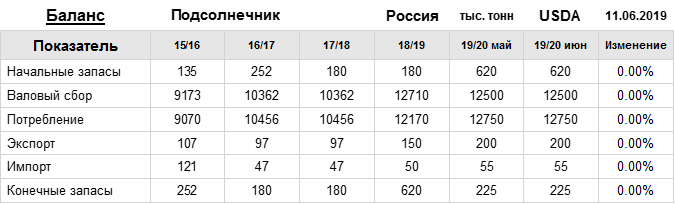 Смотрите также баланс по подсолнечнику на 13.06.2019 по Украине