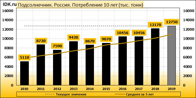 Потребление: показатель не изменился и составляет 12750 тысяч тонн.