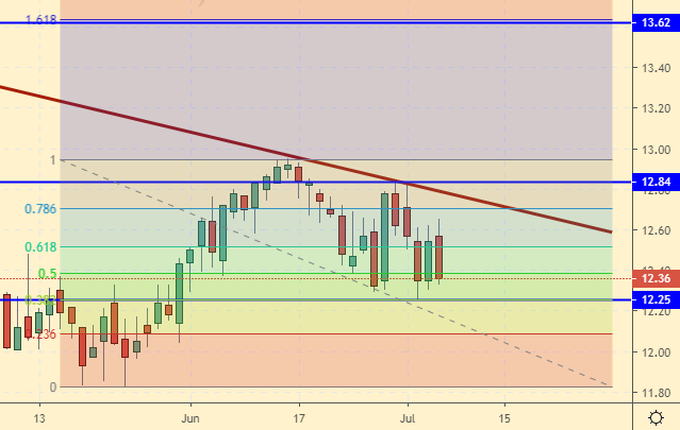 Сценарий падения: подождем. Если сломают поддержку на 12.25 можно подумать о шортах. Тогда цели будут в районе 10.00. Если будут подъемы вверх, не продавать, так как линия сопротивления под угрозой взятия.