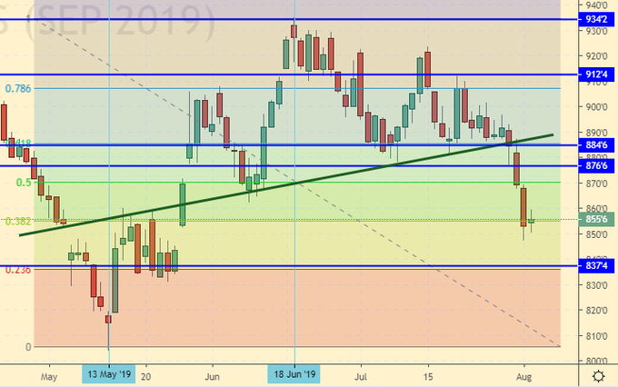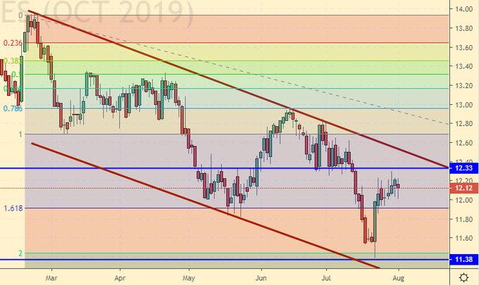 Раздрай в переговорах между США и Китаем не способствует росту цен. Трамп признал, что Китай так и не стал покупать продукцию сельского хозяйства США. Ввод новых пошлин на китайские товары с сентября 10% на объем поставок в 300 млрд. долларов ситуацию нисколько не разрешает.
