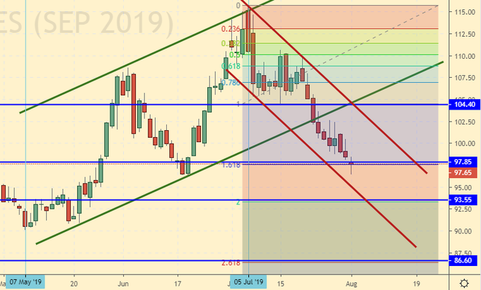 Сценарий падения: кто продал – продолжает стоять. Остальные ждут роста к 104.0. Ход к 87.00 продолжает оставаться вполне реальной вещью.