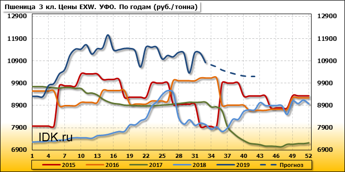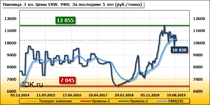 Внутренние цены на пшеницу 3 класса в Уральском федеральном округе упали на 430 руб./т. и на данный момент составляют 10820 рублей за тонну.