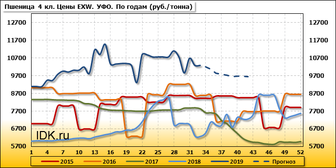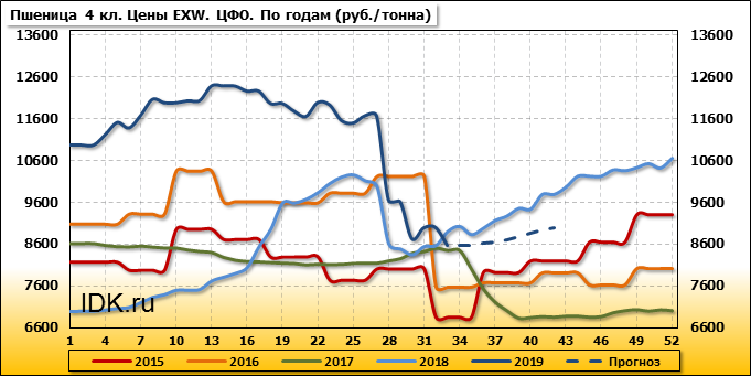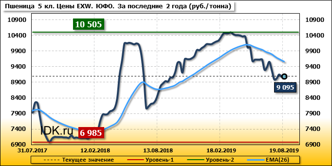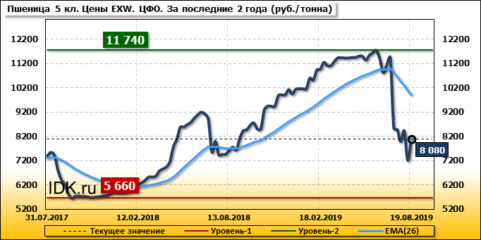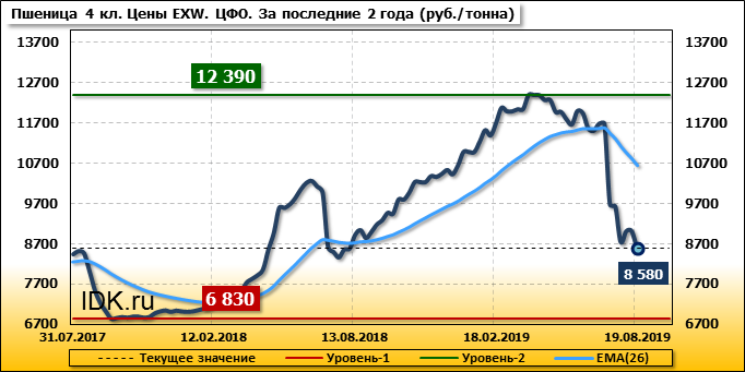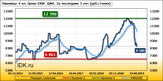 Цены на пшеницу 4-го класса снизились на 430 руб./т. и на данный момент составляют 8580 рублей за тонну.