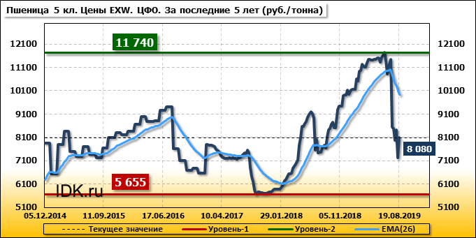 Цены на пшеницу 5-го класса повысились на 865 руб./т. и на данный момент составляют 8080 рублей за тонну.