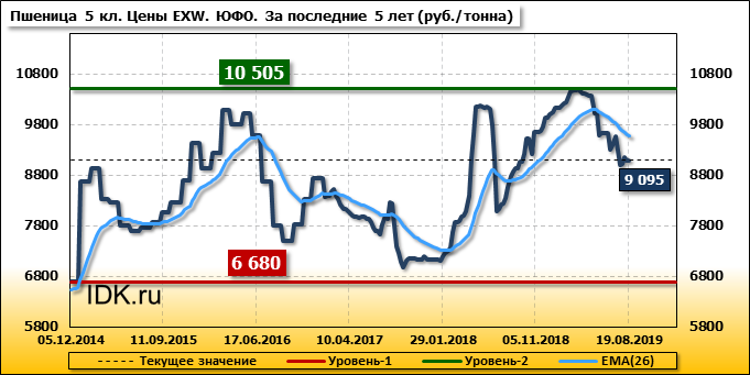 Цены на пшеницу 5-го класса повысились на 10 руб./т. и на данный момент составляют 9095 рублей за тонну.