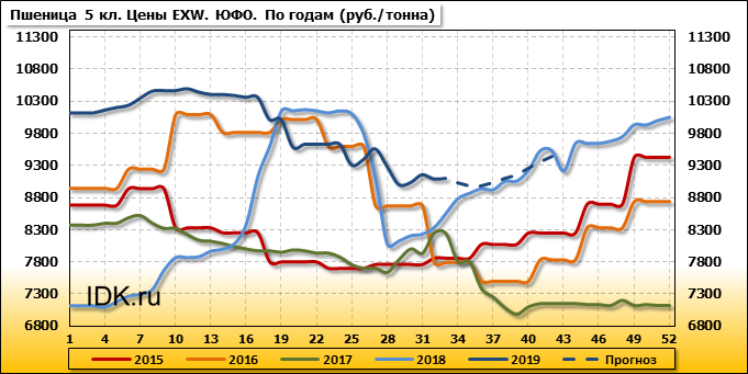 В Южном федеральном округе внутренние цены на пшеницу 3 класса упали на 30 руб./т. и на данный момент составляют 10425 рублей за тонну.