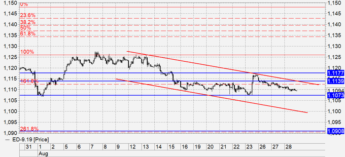 Евро: тихое падение в последние дни уходящего лета. Морозно. Как видим, евро продолжают потихоньку распродавать. Уровень 1.1070 остается для медведей основной задачей. До 12-го сентября, заседание ЕЦБ, времени еще много. Впрочем, начать распродавать евро на ожиданиях того, что ЕЦБ ничего хорошего не скажет, могли бы уже и сейчас. Пока по евро смотрим вниз.