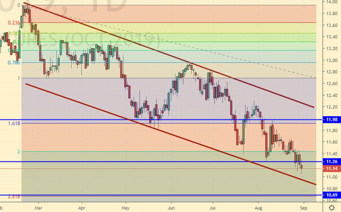 На зерновом рынке происходит то, что ему и предписано самой цикличностью сева и уборки урожая. Нас ждет еще несколько дней падения, вплоть до 12-го сентября, до выхода отчета USDA, после чего рынок развернется вверх. Писать о торговой войне смысла нет. Там все плохо. Стороны вряд ли успокоятся.