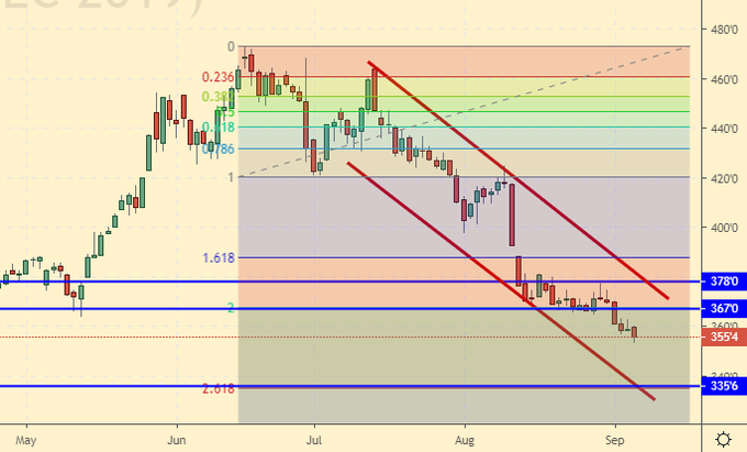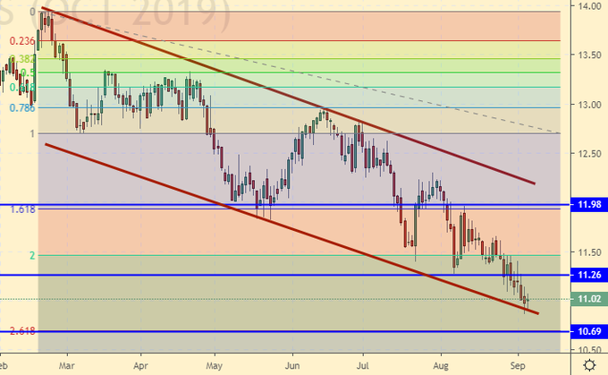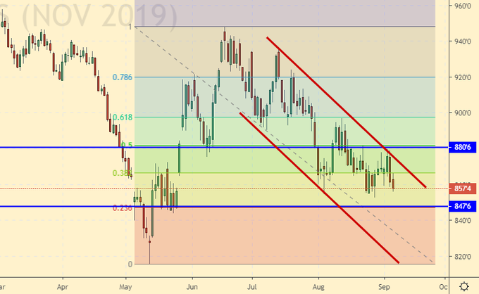 Видим, что продавцы не отстают от кукурузы. Это легко, так как очередные переговоры между США и Китаем по поставкам сельхозпродукции намечены на начало октября. В США затоваривание. Это очевидно.